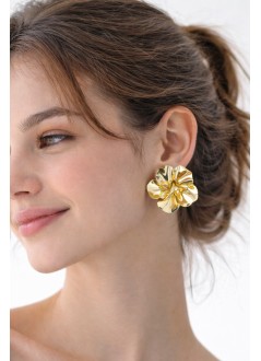 Χρυσά σκουλαρίκια λουλούδι με εντυπωσιακή υφή και κομψή λάμψη, ιδανικά για elegant και modern εμφανίσεις από το πρωί έως το βράδυ.