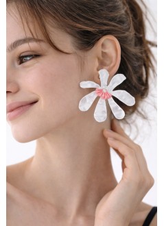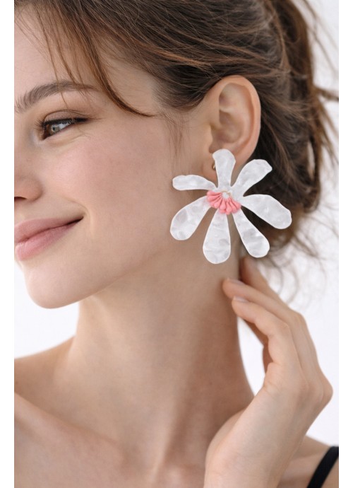 Λευκά statement σκουλαρίκια λουλούδι με ροζ λεπτομέρεια, ιδανικά για ανοιξιάτικες και καλοκαιρινές εμφανίσεις.