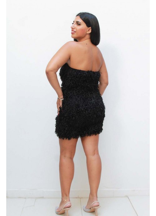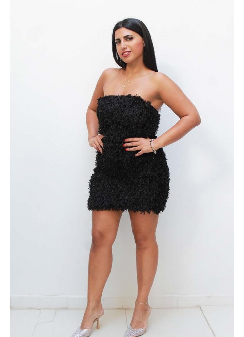 Μαύρο στράπλες Mini φόρεμα με φτερά