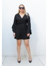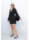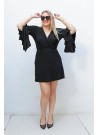 Αναδείξτε το στυλ σας με αυτό το εντυπωσιακό μαύρο κοντό φόρεμα με καμπάνα μανίκια. Το κρουαζέ ντεκολτέ προσθέτει θηλυκότητα, ενώ η ανάλαφρη γραμμή και το άνετο ύφασμα προσφέρουν ευελιξία στην κίνηση και κομψότητα. Ιδανικό για βραδινές εξόδους, κοκτέιλ πάρτι ή ακόμα και για ένα μοντέρνο office look με το κατάλληλο layering.