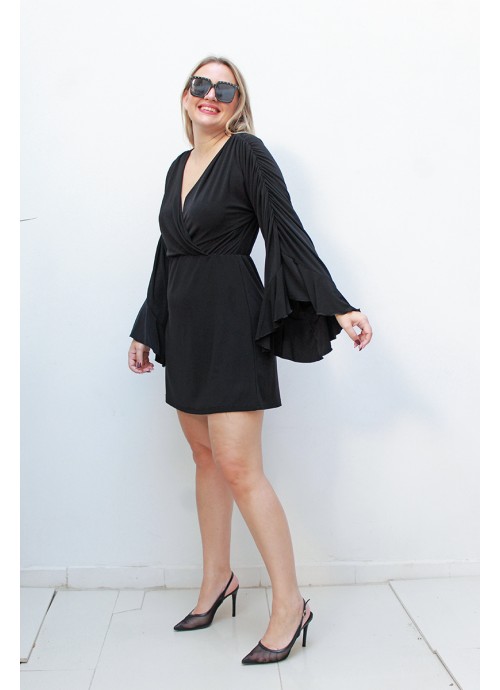Μαύρο φόρεμα με καμπάνα μανίκια