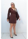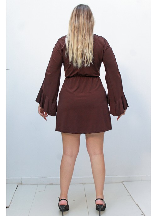 Καφέ Mini φόρεμα με καμπάνα μανίκια