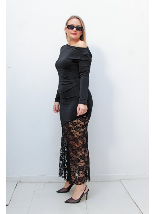Μαύρο φόρεμα με δαντέλα & έξω ώμους