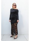Κάνε αίσθηση με αυτό το εντυπωσιακό μαύρο φόρεμα με έξω ώμους και διάφανη φούστα από δαντέλα. Η ασύμμετρη κοπή στο τελείωμα και το στενό επάνω μέρος αγκαλιάζουν τις καμπύλες με κομψότητα, ενώ το floral δαντελένιο μοτίβο προσθέτει μια αισθησιακή, ρομαντική πινελιά. Ένα φόρεμα που συνδυάζει θηλυκότητα και μοναδικό στυλ, ιδανικό για special events, βραδινές εξόδους και party nights.