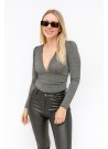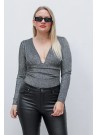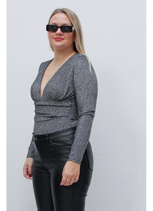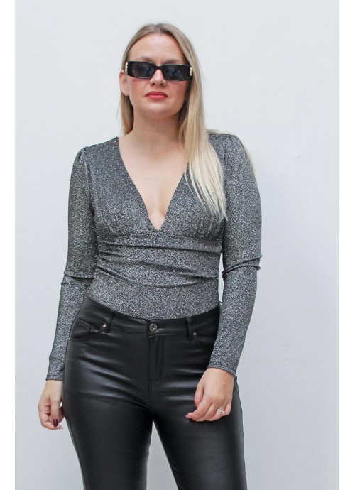 Ασημί λαμπερό κορμάκι με βαθύ V ντεκολτέ