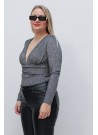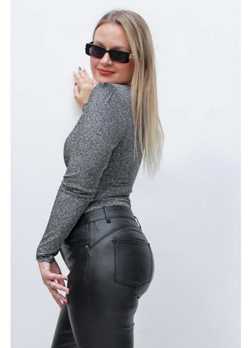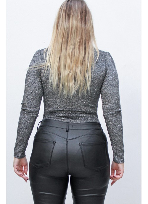 Αναδείξτε την glam πλευρά σας με αυτό το εκθαμβωτικό ασημί κορμάκι με glitter υφή και βαθύ V ντεκολτέ. Το εφαρμοστό του κόψιμο αγκαλιάζει τη σιλουέτα και δημιουργεί μια σαγηνευτική γραμμή, ιδανική για clubbing, βραδινές εξόδους ή γιορτινά events. Με μακριά μανίκια για extra ισορροπία και άνεση, αυτό το κορμάκι είναι must-have για τις πιο λαμπερές στιγμές της σεζόν.