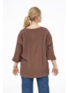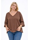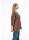 Καφέ μπλούζα με V λαιμόκοψη, μανίκι 3/4 και άνετη γραμμή. Σταθερό ύφασμα χωρίς ελαστικότητα. Κομψή και ευκολοσυνδύαστη για κάθε περίσταση.