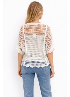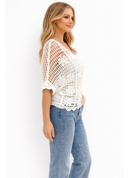 Μπλούζα λευκή Crochet με λουλουδένιο σχέδιο