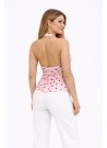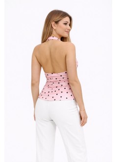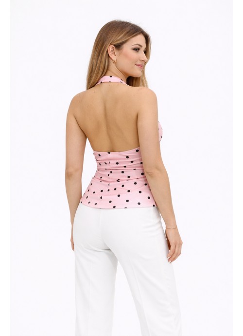 Ροζ πουά μπλούζα Halter με ανοιχτή πλάτη