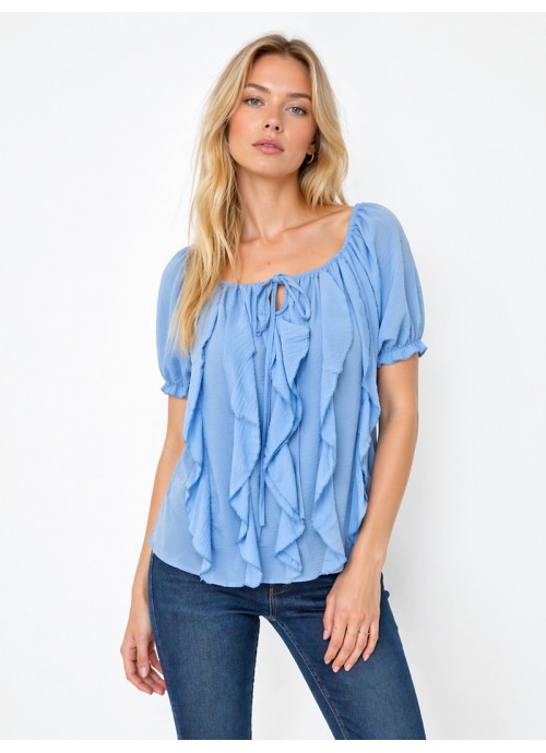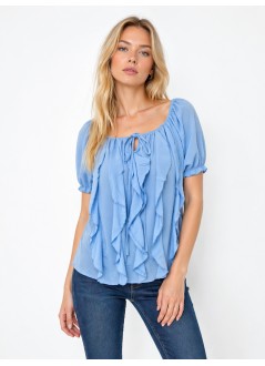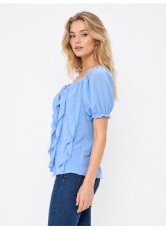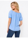 Κίτρινο ελαστικό T-shirt με V λαιμόκοψη και print σκύλου σε denim ύφος, ιδανικό για άνετα και φωτεινά καθημερινά looks.