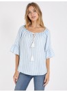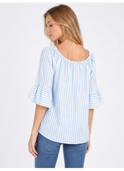 Ριγέ μπλούζα σε γαλάζιο-λευκό με έξω ώμους