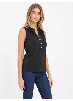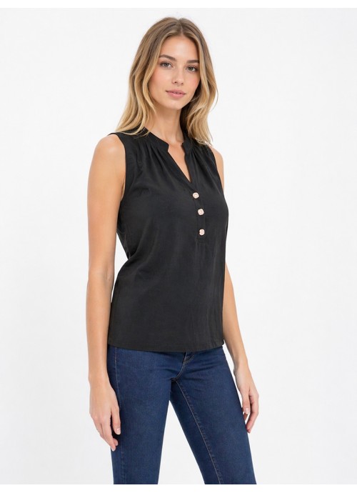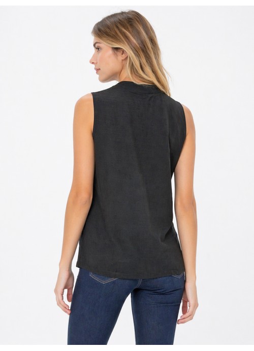 Μαύρη αμάνικη μπλούζα με κουμπιά και minimal γιακά