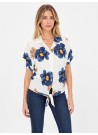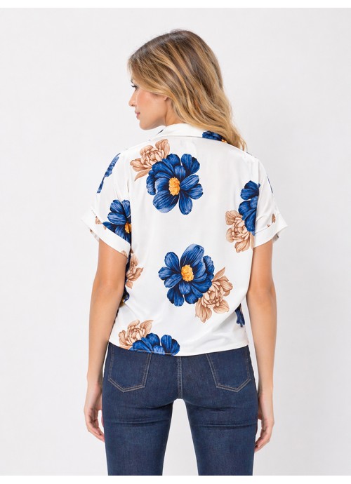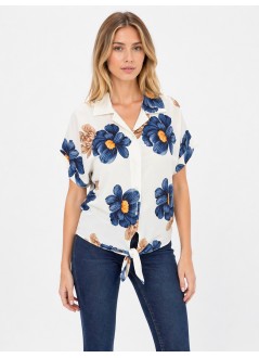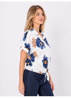 Μπλούζα με floral print σε λευκή βάση και δέσιμο στο τελείωμα, ιδανική για δροσερές και κομψές εμφανίσεις με καλοκαιρινό χαρακτήρα.