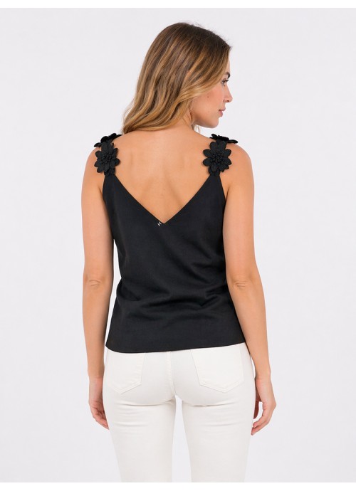 Μαύρο τοπ με floral λεπτομέρειες στους ώμους