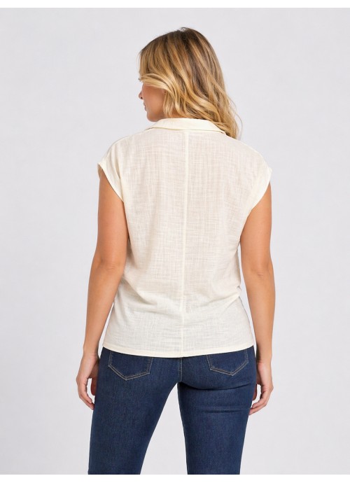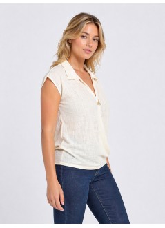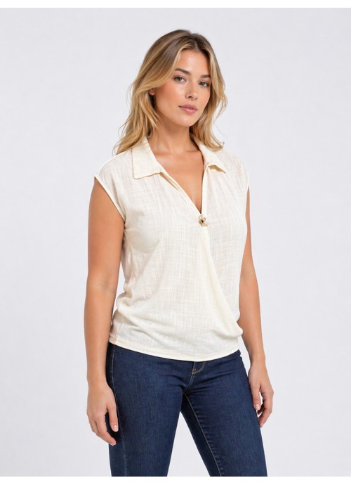 Μπεζ κρουαζέ μπλούζα με γιακά από σταθερό ύφασμα
