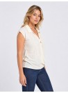 Ο διακριτικός γιακάς και το κομψό V ντεκολτέ προσθέτουν μία elegant πινελιά, καθιστώντας τη μπλούζα ιδανική τόσο για επαγγελματικά όσο και για καθημερινά outfits. Η ουδέτερη μπεζ απόχρωση συνδυάζεται εύκολα και αποτελεί βασικό κομμάτι για κάθε γυναικεία γκαρνταρόμπα.