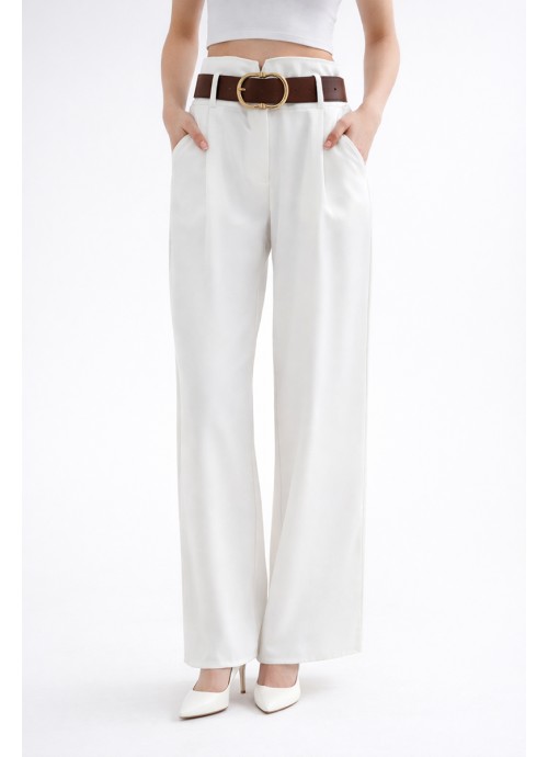 Κομψό ψηλόμεσο λευκό παντελόνι σε wide leg γραμμή με λάστιχο στο πίσω μέρος για άνετη εφαρμογή και ζώνη που αναδεικνύει τη μέση. Από S έως XL....