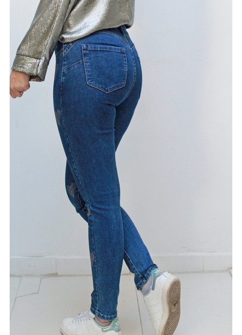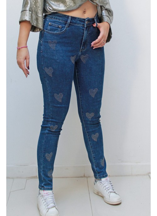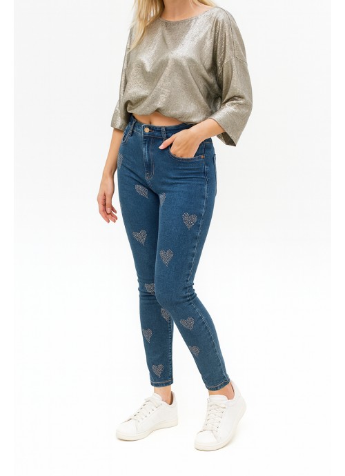 Τζιν Skinny με καρδιές από στρας ψηλόμεσο