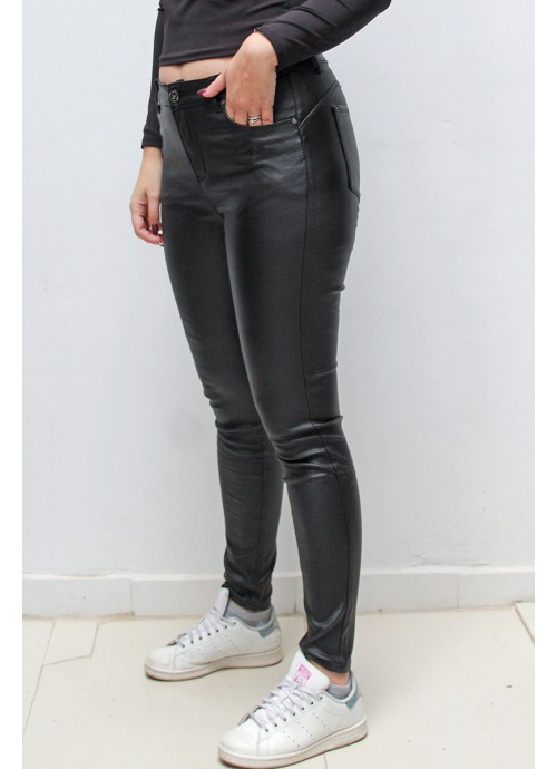 Ψηλόμεσο παντελόνι από δερματίνη μαύρο