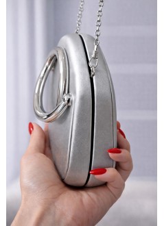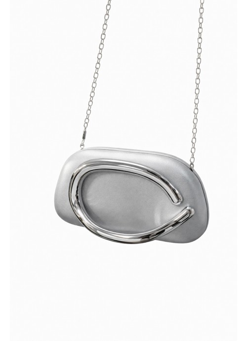 Ασημί τσάντα χιαστί clutch με μεταλλική λεπτομέρεια και αλυσίδα. Ιδανική για βραδινές και επίσημες εμφανίσεις με μοντέρνο και λαμπερό χαρακτήρα.