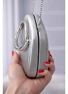 Ασημί τσάντα χιαστί Clutch με μεταλλική λεπτομέρεια
