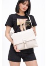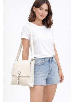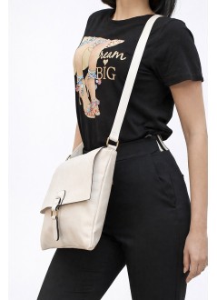 Crossbody τσάντα μπεζ με καπάκι & ρυθμιζόμενο λουρί